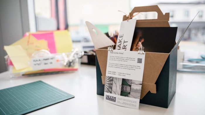 This summer’s Make Art Series workshops, drop-in Make Stations, and Make Art packets have been developed by CVAG’s summer student interns, who have been inspired by the work presented in the exhibition: Diane Landry: Matière dans le Temps | Matter in Time from June 15 – September 14. Landry is known for her kinetic sculptural works and performances that utilize light, shadow, sound and movement. Much of her work incorporates the use of upcycled materials.