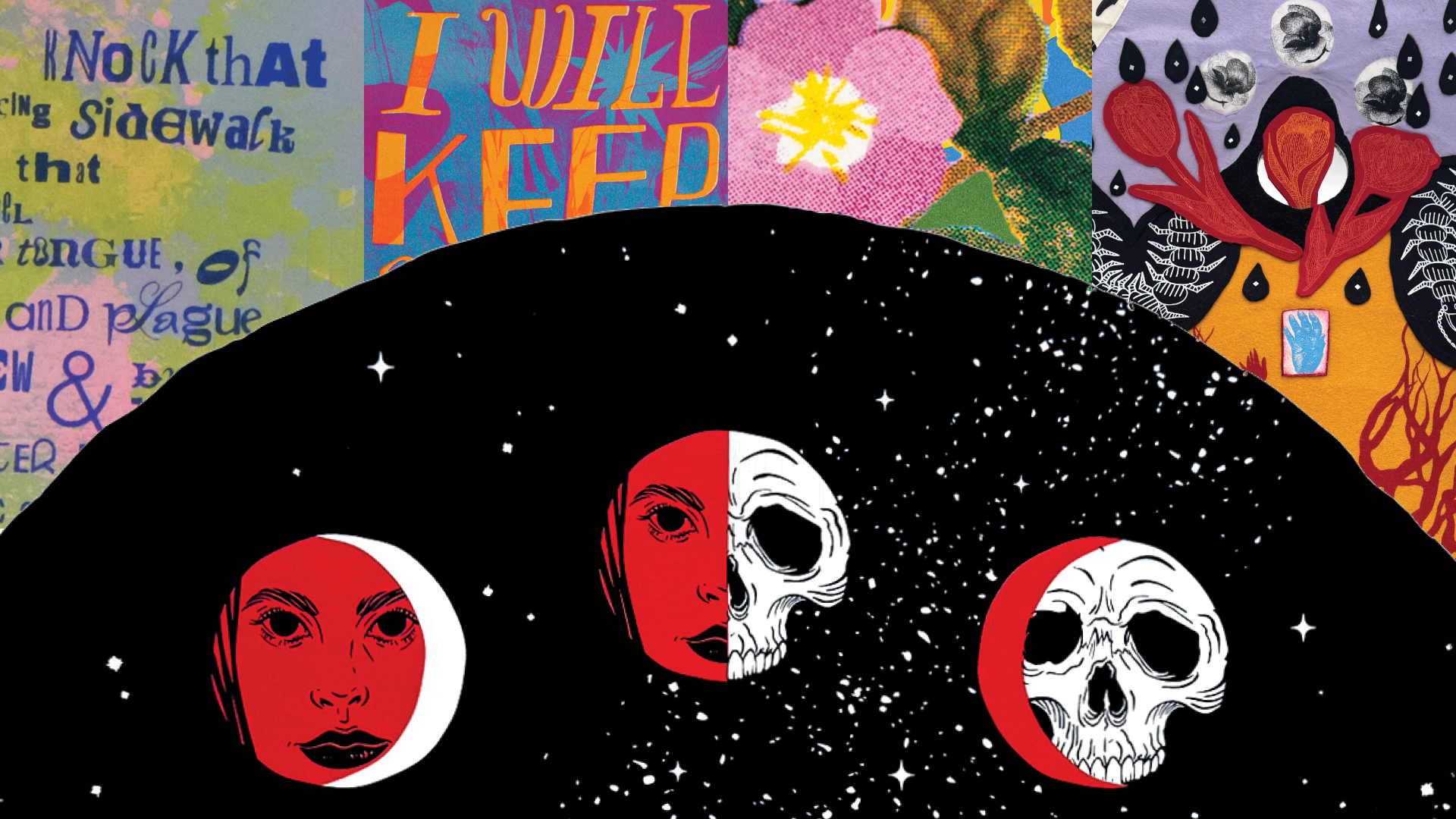 The red stars and creatures along the sides add a sense of protection and energy. Some shapes are inspired by anatomy, plants, and insects — all the powerful things that live inside and around us.