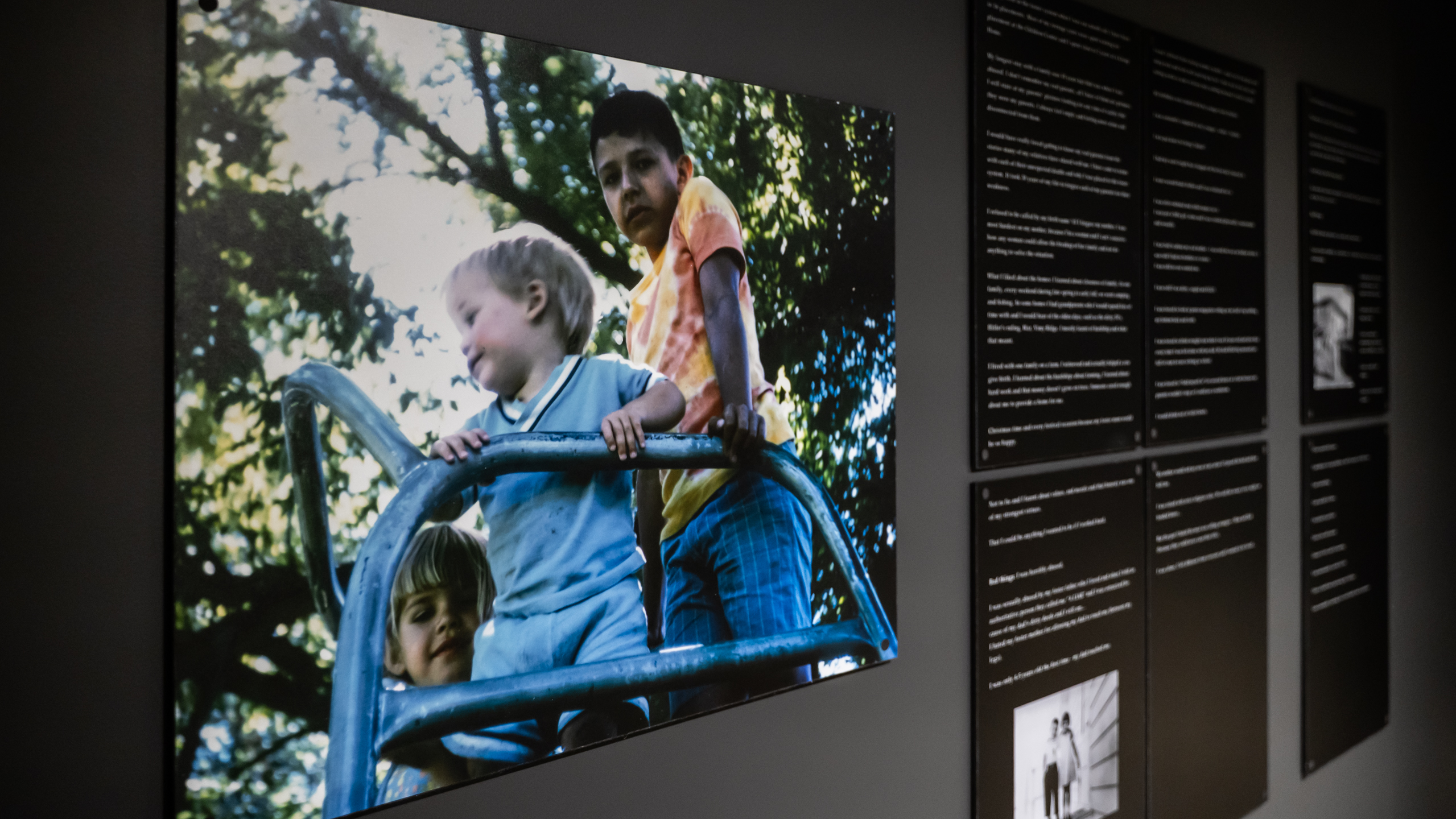 At the time of its creation in 1996, Displaced Indians: The Sixties Scoop was one of the first bodies of work by an Indigenous artist to speak about the experience of Indigenous children who were torn from their homes and adopted or fostered out into non-Indigenous families during what is known as the Sixties Scoop era in Canada.