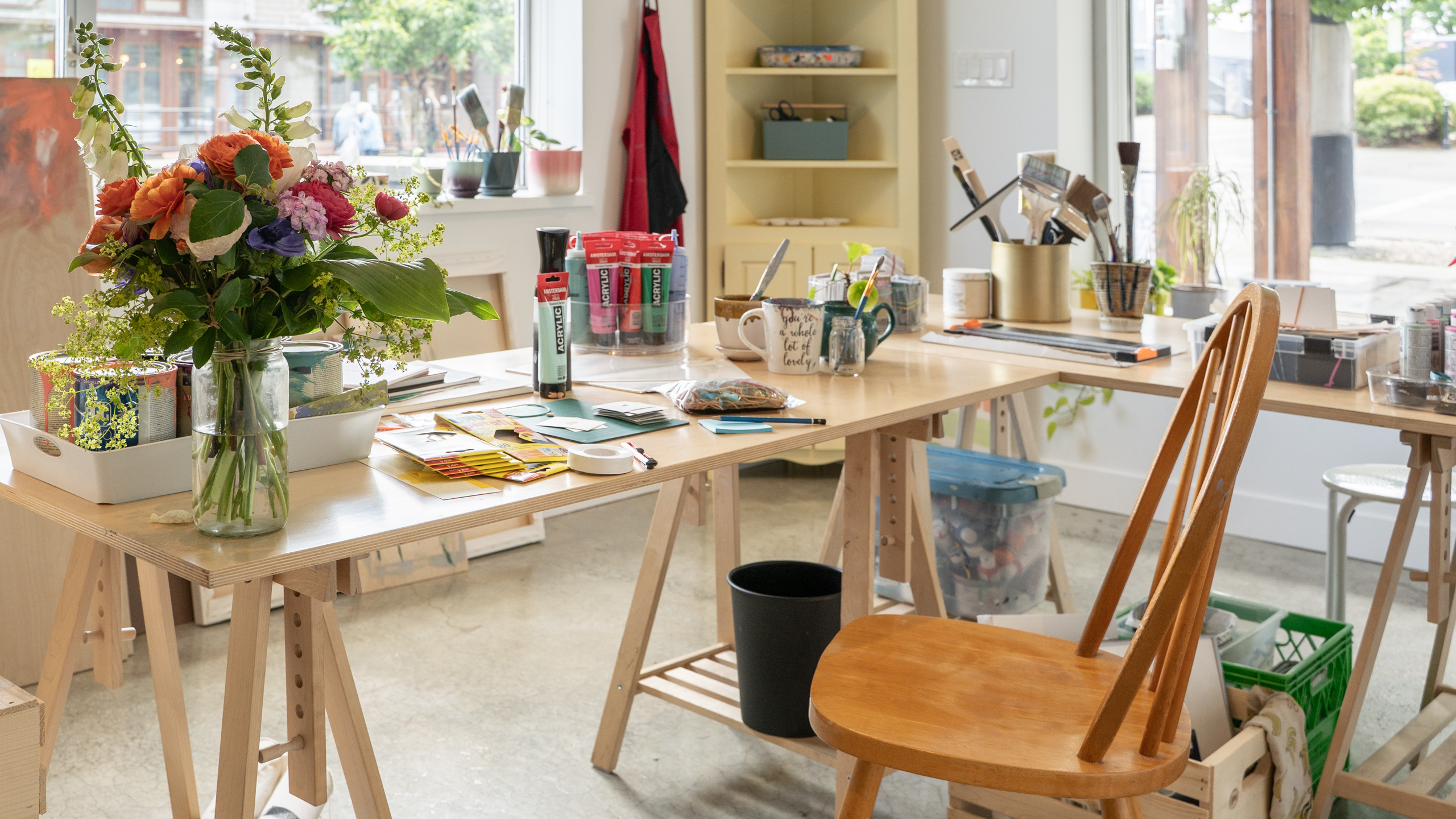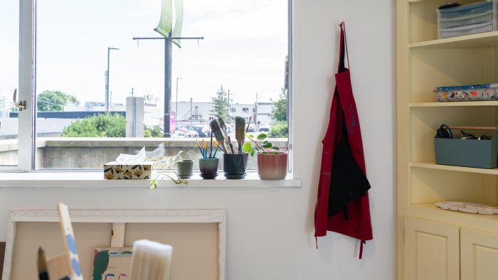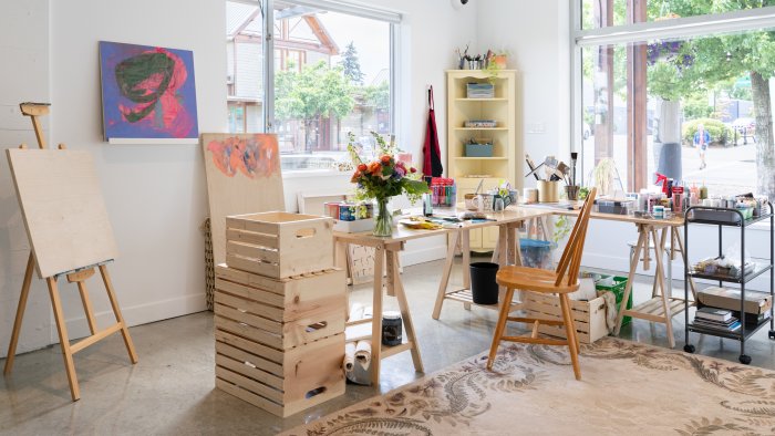 The artist welcomes the community to drop by for conversation and spontaneous art-making: