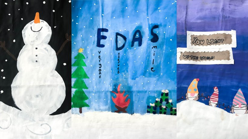"Envelopes of love" made by Ecole Puntledge Park students for EDAS are displayed in CVAG's Community Gallery.