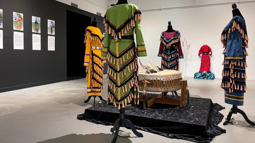 January 19 – February 14, 2022 – Installation Presentation at CVAG / January 22 at 4PM – Opening Ceremony / February 12 at 11:30AM – Closing Ceremony – “NOOJIM OWIN”…THE GIFT OF THE HEALING DANCE….WHEN WE DANCE, WE DANCE FOR THE PEOPLE – A circle of cultural practice participants engage community collaboration and activation through cross-cultural sharing through the Jingle Dance Project.
